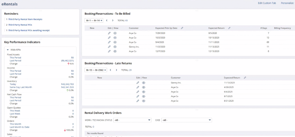 eRentals is a comprehensive rental management solution built 100% on NetSuite’s SuiteCloud platform. Designed for organizations that rent, service, and manage equipment across multiple locations, eRentals automates the entire rental lifecycle — from reservation and pickup through return, billing, maintenance, and replacement — all directly inside NetSuite.